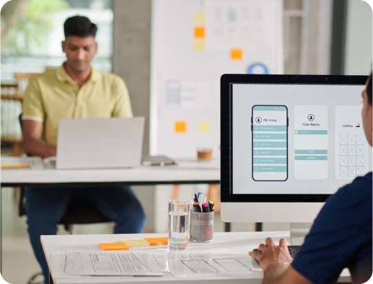 Integrating insights gleaned from research, feature lists, and user flows, our UX design process meticulously constructs robust wireframes—akin to blueprints—that map out the entire application’s user experience. We meticulously consider all nuances to ensure a seamless user journey. Subsequently, we seamlessly integrate brand design assets into the product design process, producing a comprehensive set of UI designs that encompass all screens, states, and visual experiences.